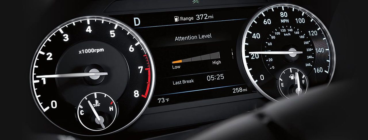 While you might not always realize when you’re fatigued or distracted, the G90’s Driver Attention Warning* does. Able to analyze variable driving patterns, it issues visual and audio alerts when it senses you should stop and rest for safety’s sake.